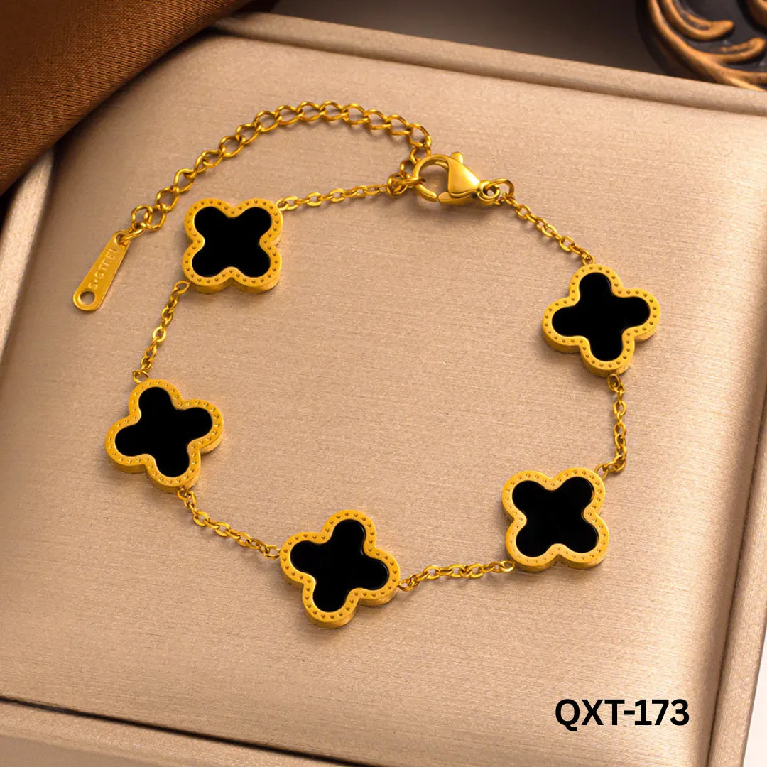 QXT-173 - Black Clover Bracelet - Stainless Steel